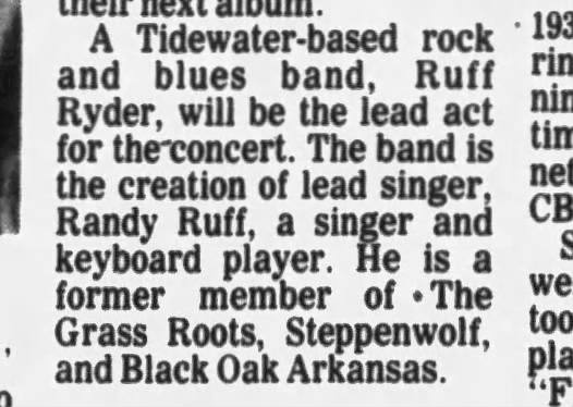 Ruff Ryders on the bill with The Greg Allman band and Atlanta Rhythm Section.