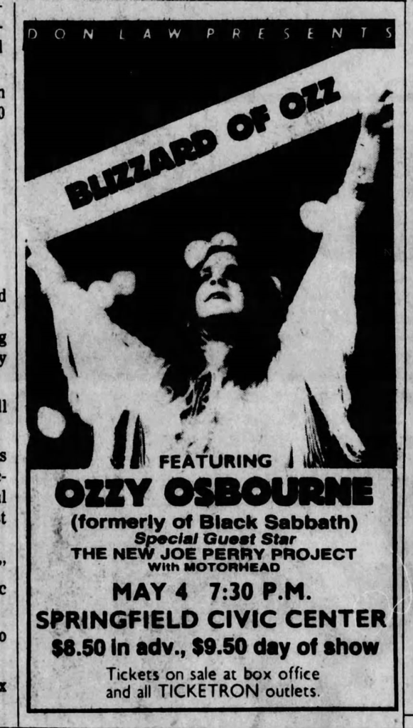 (Advert for Ozzy with The Joe Perry Project and Motorhead… What a line-up!)