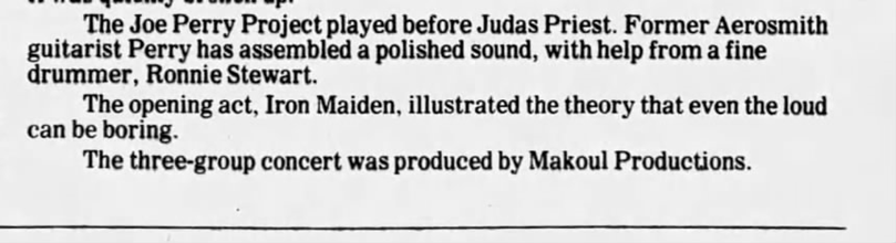 (The Morning Call 27 July 1981 – Tough day to be an Iron Maiden fan)